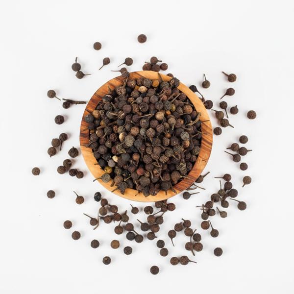 Kabab Chini, also known as cubeb or tailed pepper, is a spice derived from the dried unripe fruits of the *Piper cubeba* plant. Native to Java and Sumatra in Indonesia, it is widely cultivated in other parts of Southeast Asia, India, and Malaysia. Kabab Chini is known for its aromatic and medicinal properties and is often used in Ayurvedic medicine.